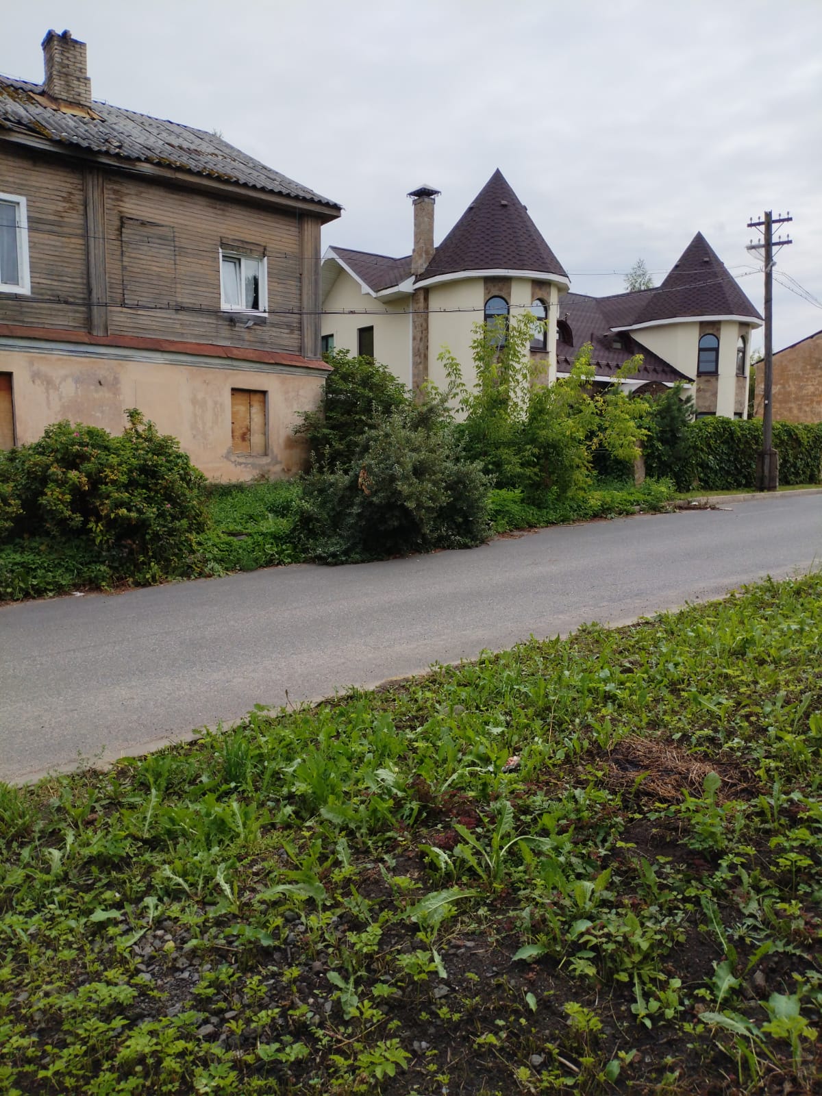 А рядом с ними современные богатые коттеджи с вензелями инициалов хозяев на воротах