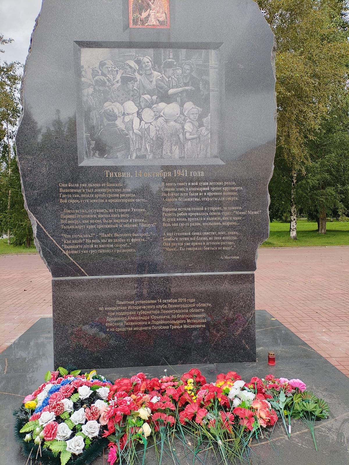 В огне от разорвавшихся авиабомб погибли более двух тысяч детей блокадного Ленинграда, следовавших в эвакуацию, а также сотни раненых красноармейцев и тихвинские пожарные, которые ценой собственных жизней спасали из огня детей блокадного города.
