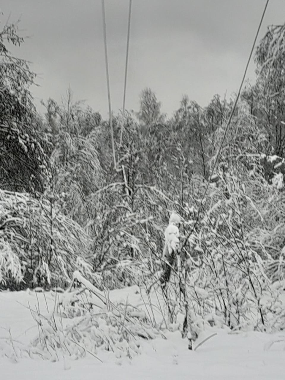 Дааа... умеет, однако, стихия "обломать немало веток, наломать немало дров" ( и столбов, и проводов...), но, если на минутку отойти от проблем, то, надо сказать, что заснеженный пейзаж просто сказочен.
