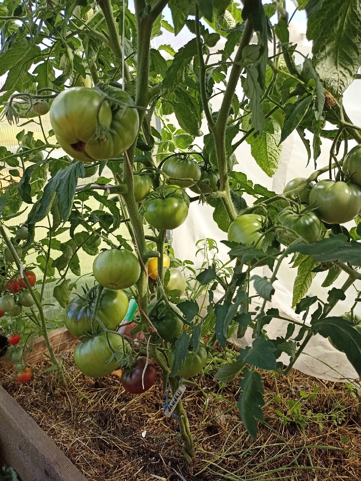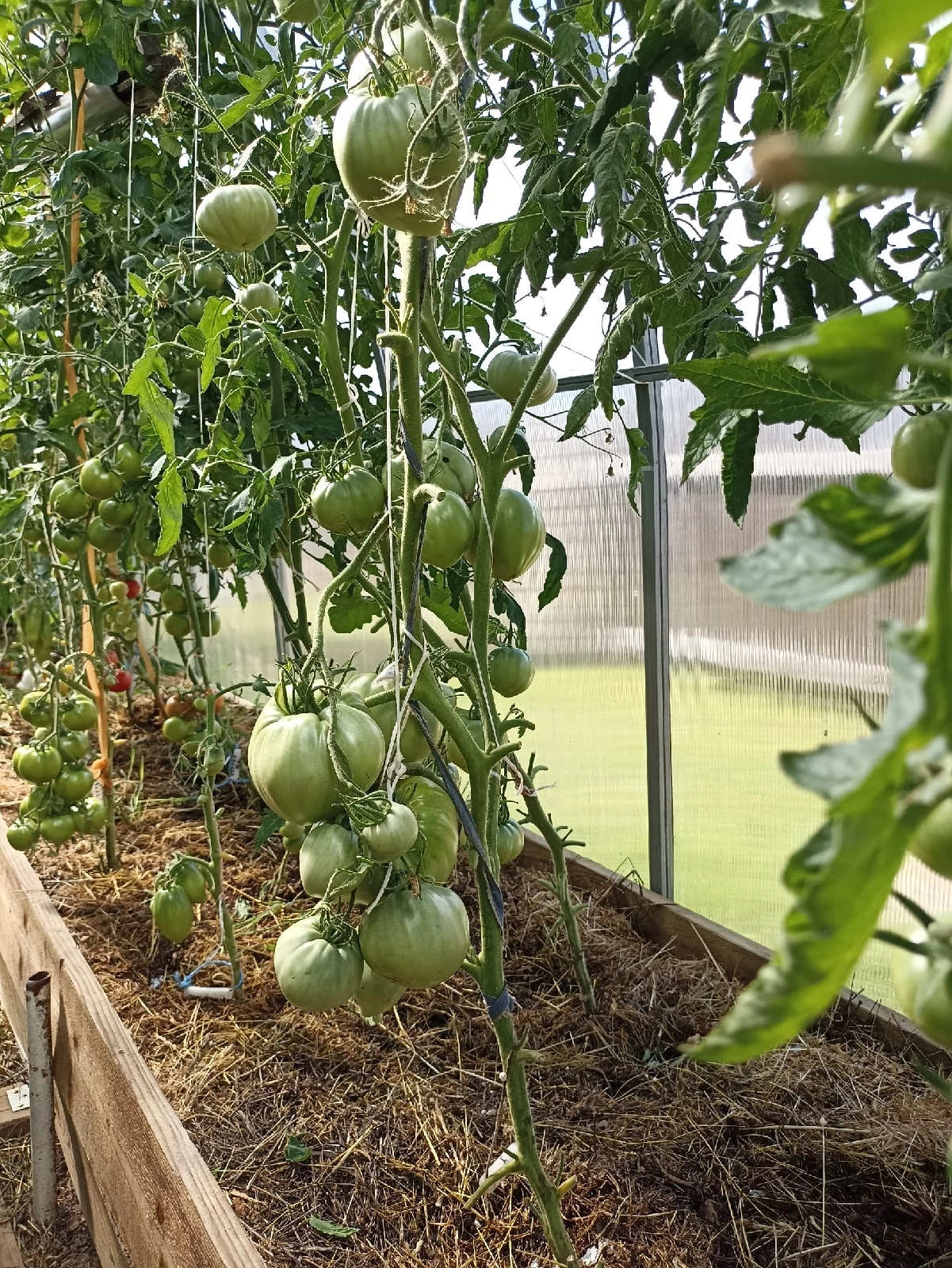 Мила_я,Людмила, а твои Кумато или Черная икра с ума сошли. Я их в 2 стебля веду, так обо стебля почти по 3 метра, уже вдоль теплицы растут.